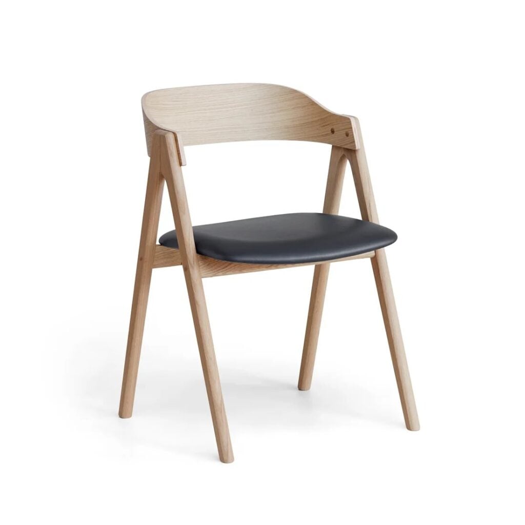 Mette borðstofustóll hvít olíub. eik/leður svartur+ viðar bak