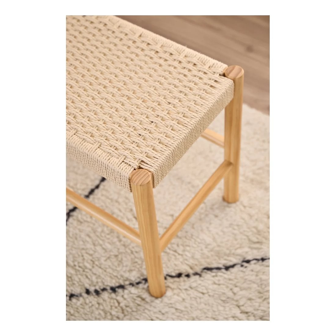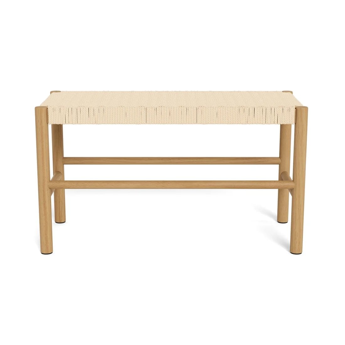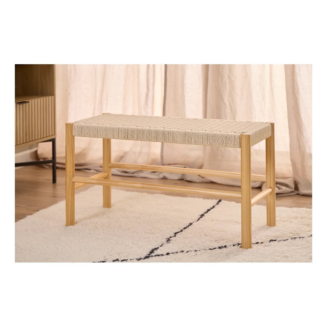 Bekkur með fléttaðri setu og ljósum fótum úr furu