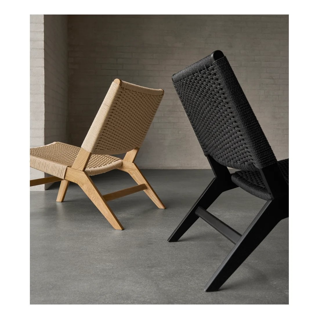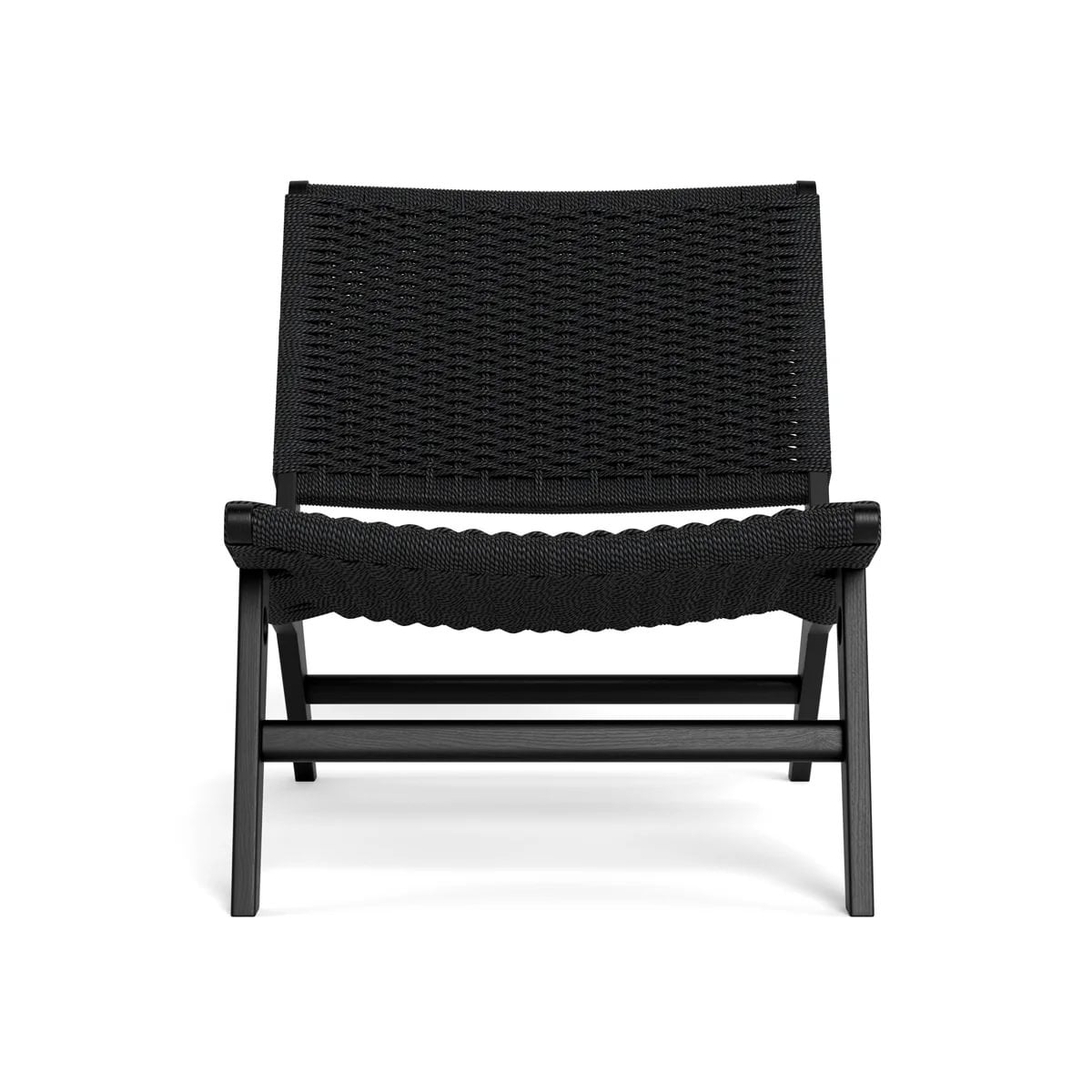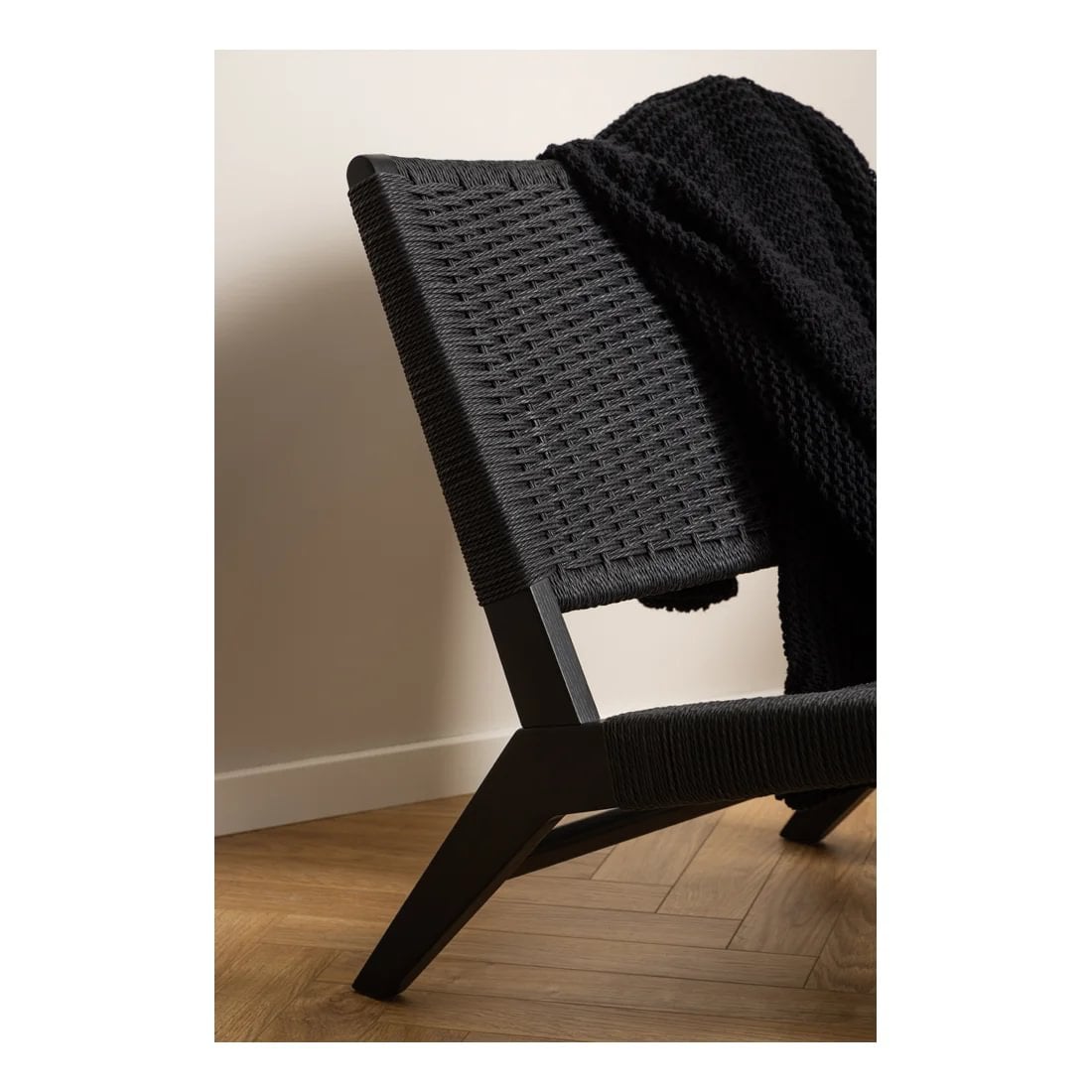 Fallegur hægindastóll með fléttuðu baki og sessu. Matt lakkaðir svartir eikarfætur.