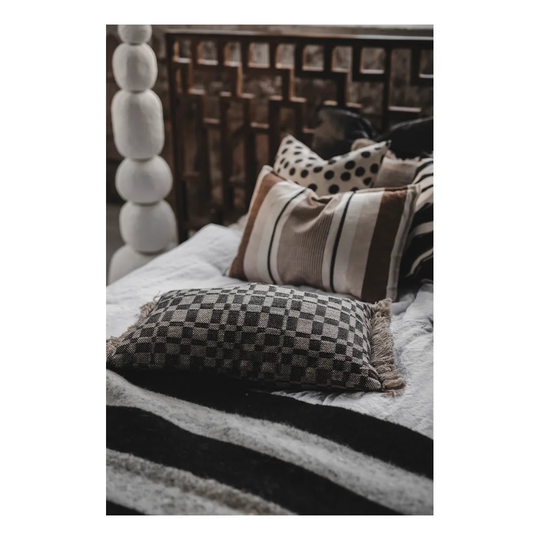 Jakobsdals Check púði m/fringe svartur 40x60cm