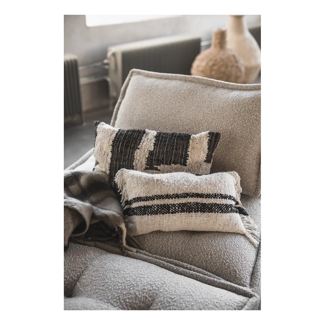 Jakobsdals Hana púði m/fringe beige/svartur