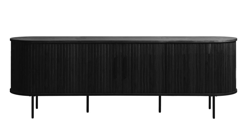 Sjónvarpsskenkurinn leikur sér með andstæður í svörtu og hvítu, þar sem hvítur marmarinn á toppnum mætir dökkum við í fíngerðri stálgrind í svörtu. Með sinni sporöskjulaga lögun og lóðréttum línustrúktúr er Glenn hreinræktað meistaraverk í grafískri húsgagnahönnun.  Glenn hentar ekki bara undir sjónvarp – heldur einnig sem lágt hliðarborð, inn á heimaskrifstofuna undir möppur, spjaldtölvur og hleðslustöðvar, eða sem stílhreint geymslu­húsgagn í stofu eða borðstofu.