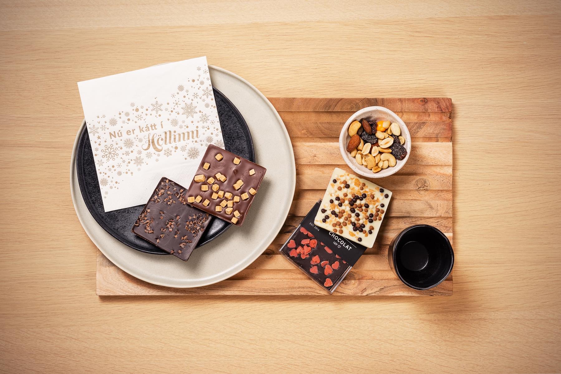Bragðgott dökkt súkkulaði með rauðum hjörtum. Falleg gjöf fyrir þann sem þér þykir vænt um.