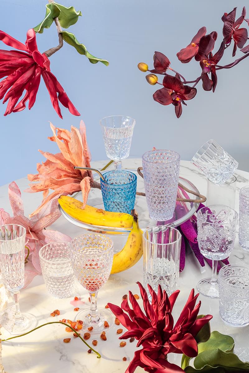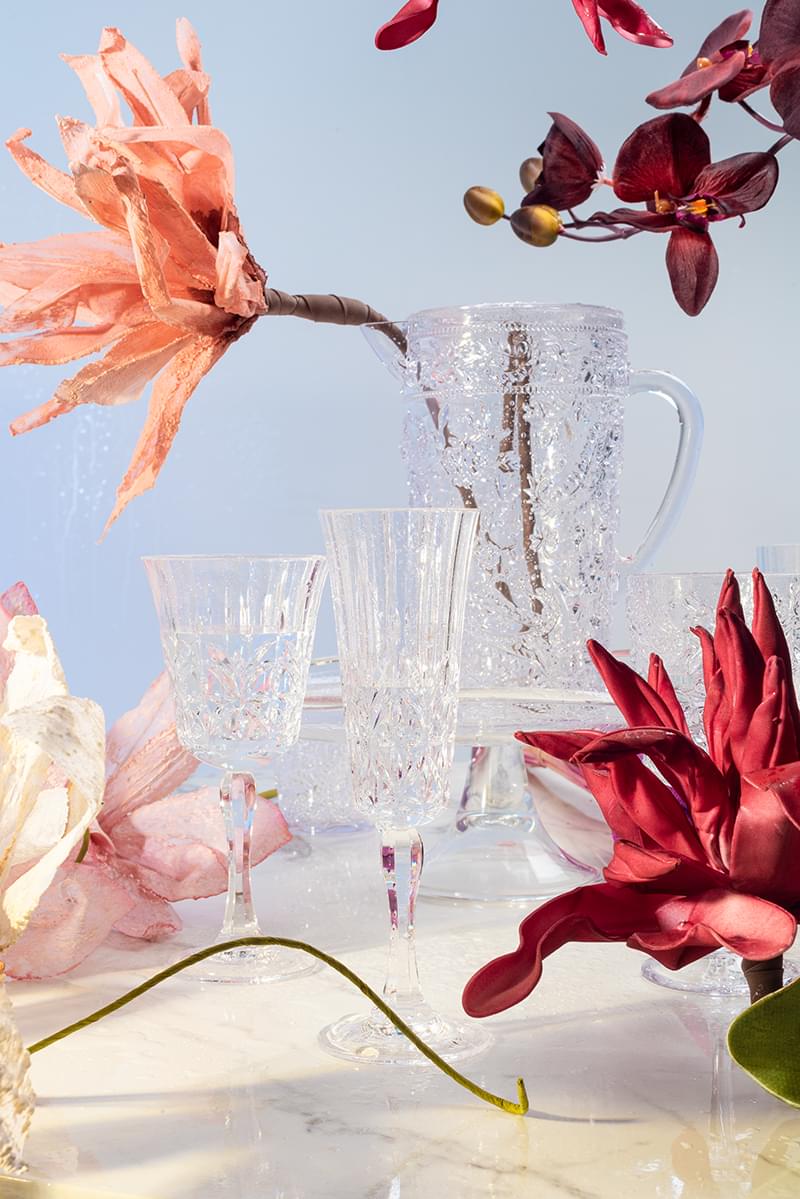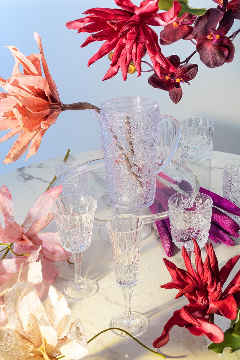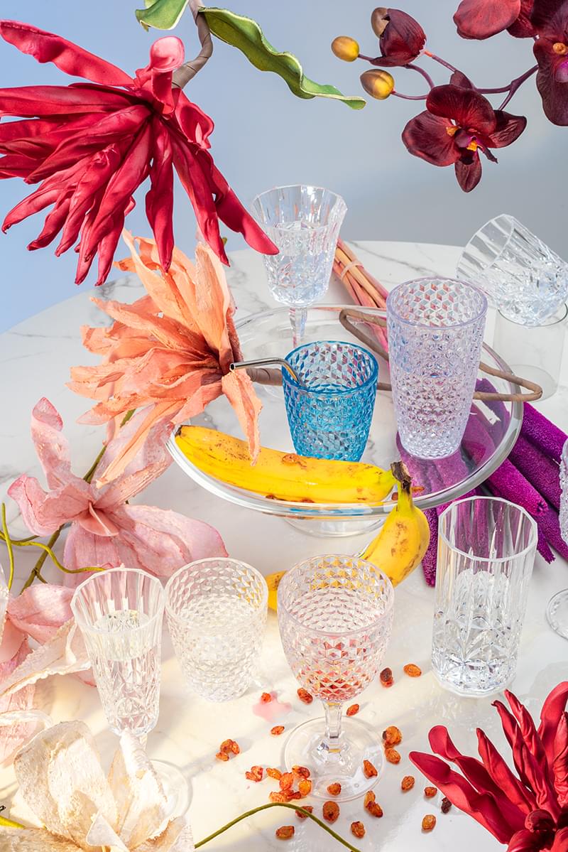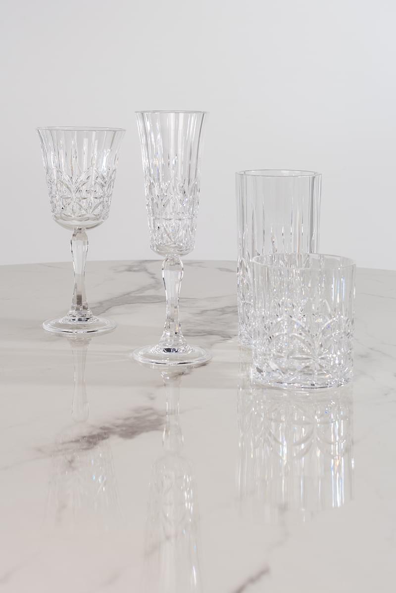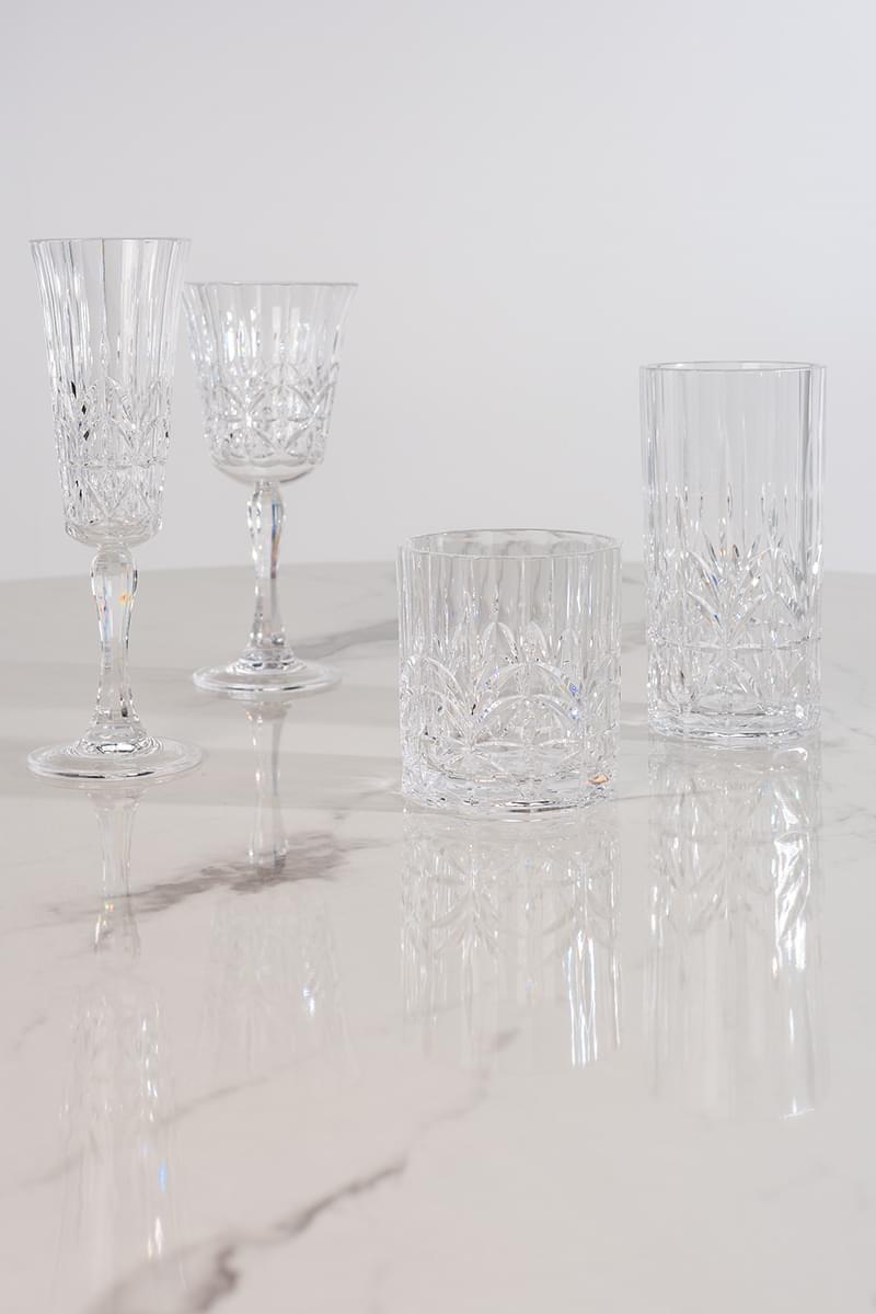 Þetta fallega kristalskorna vínglas úr er úr akrýl, það er BPA frítt og er fullkomið út á pallinn, í garðinn eða í útileguna. Tærleikinn í plastinu er 100% og lítur það því út eins og gler eða kristall. Það hefur staðist FDA próf og er því algjörlega öruggt þegar kemur að drykkjarnotkun. Það þolir hita upp á allt að 80 gráðum og má setja í uppþvottavél.