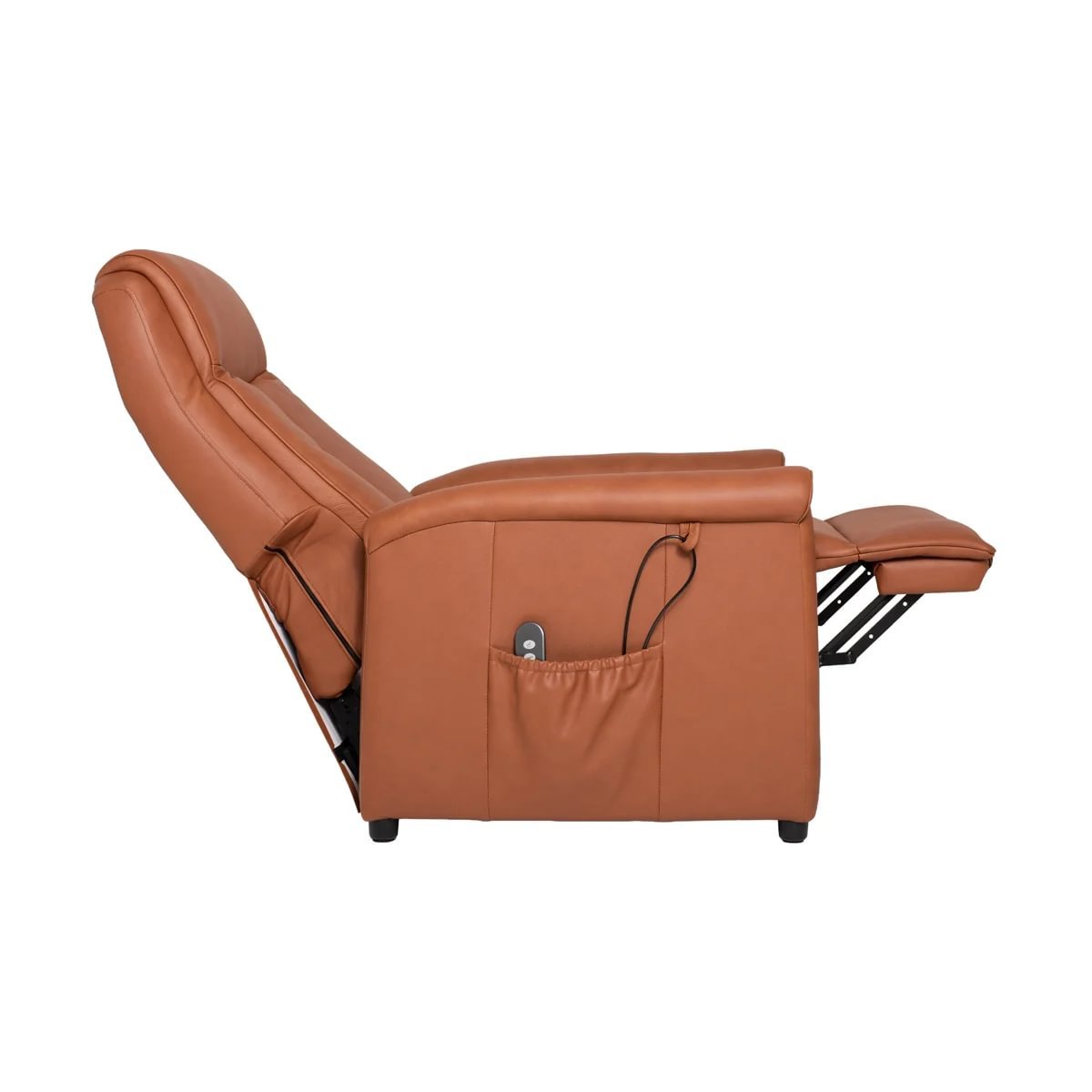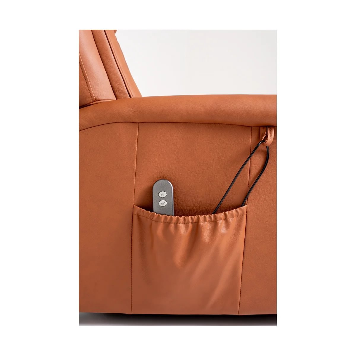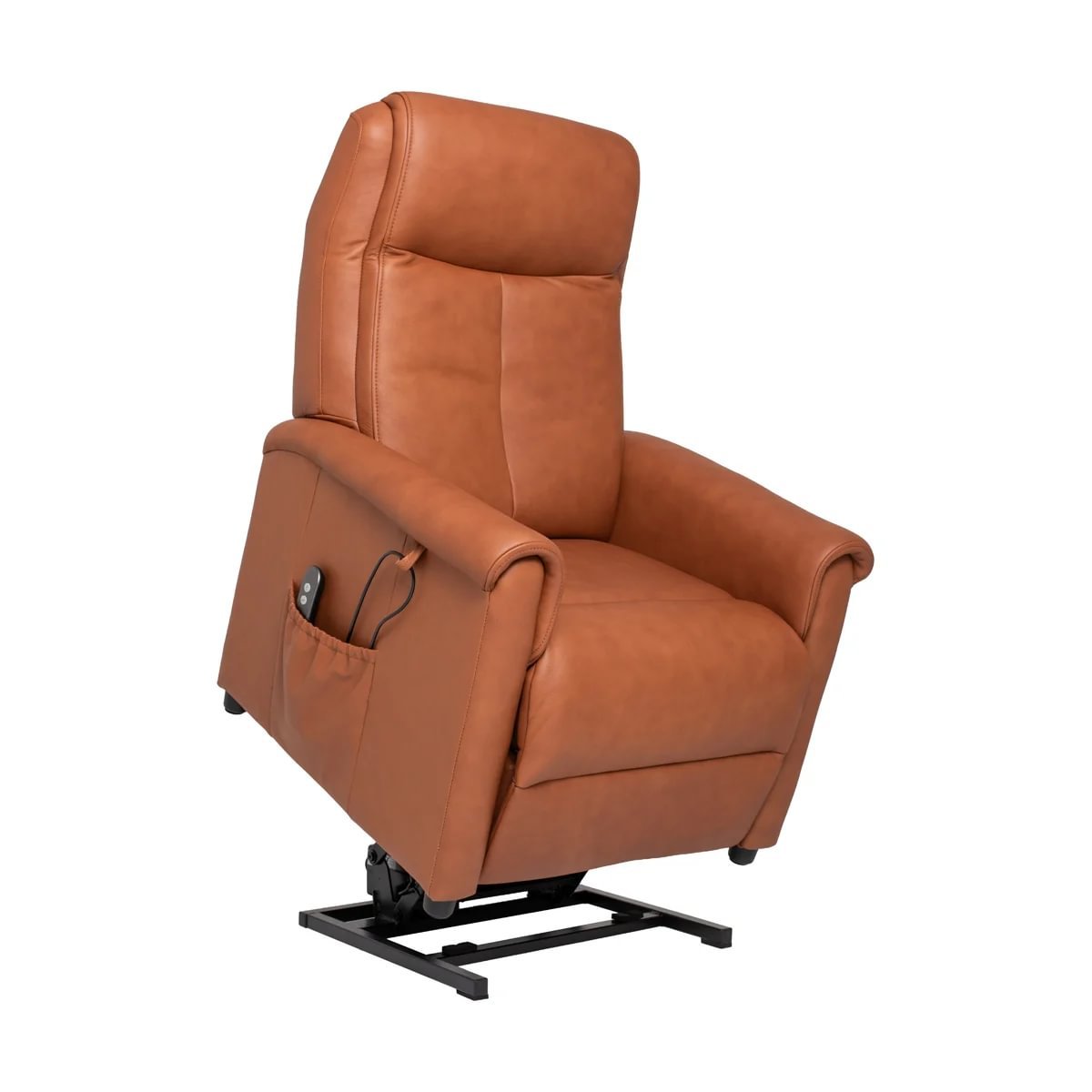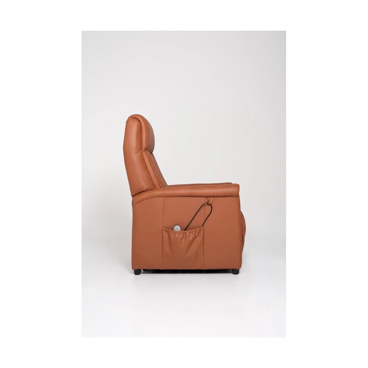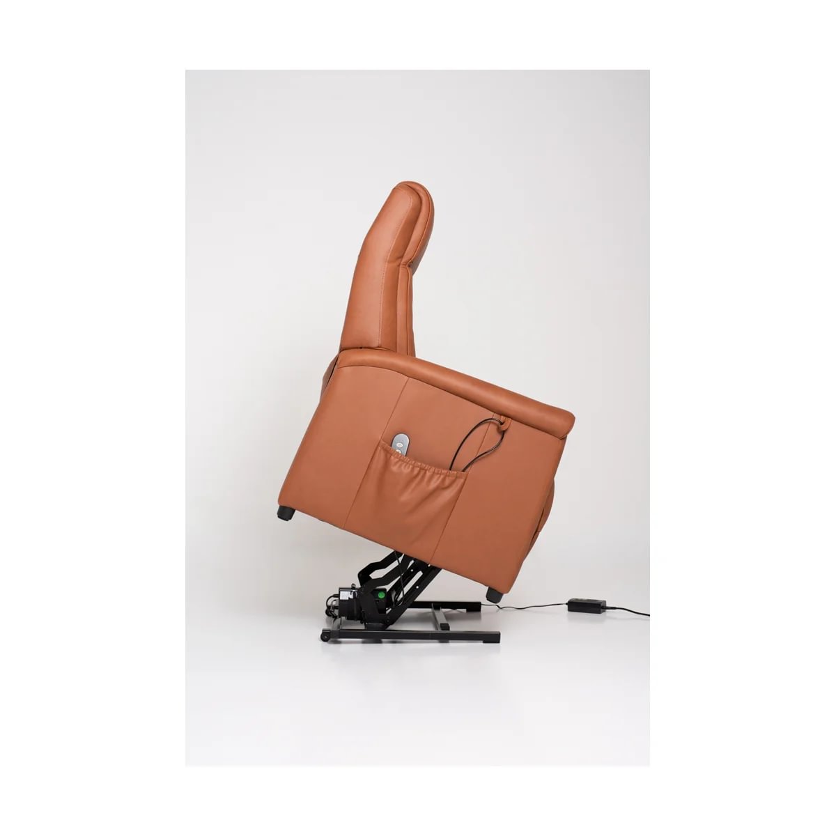 Sander lyftistóllinn sameinar lúxus, þægindi og notagildi. Klæddur í mjúkt og slitsterkt Anilen Camel leður og búinn rafknúnu lyftikerfi með fjarstýringu sem gerir setu og standandi stöðu létta og örugga. Hagnýtur hliðarvasi heldur fjarstýringunni innan seilingar.