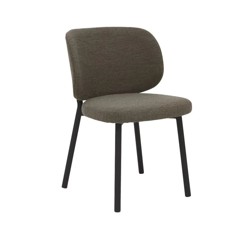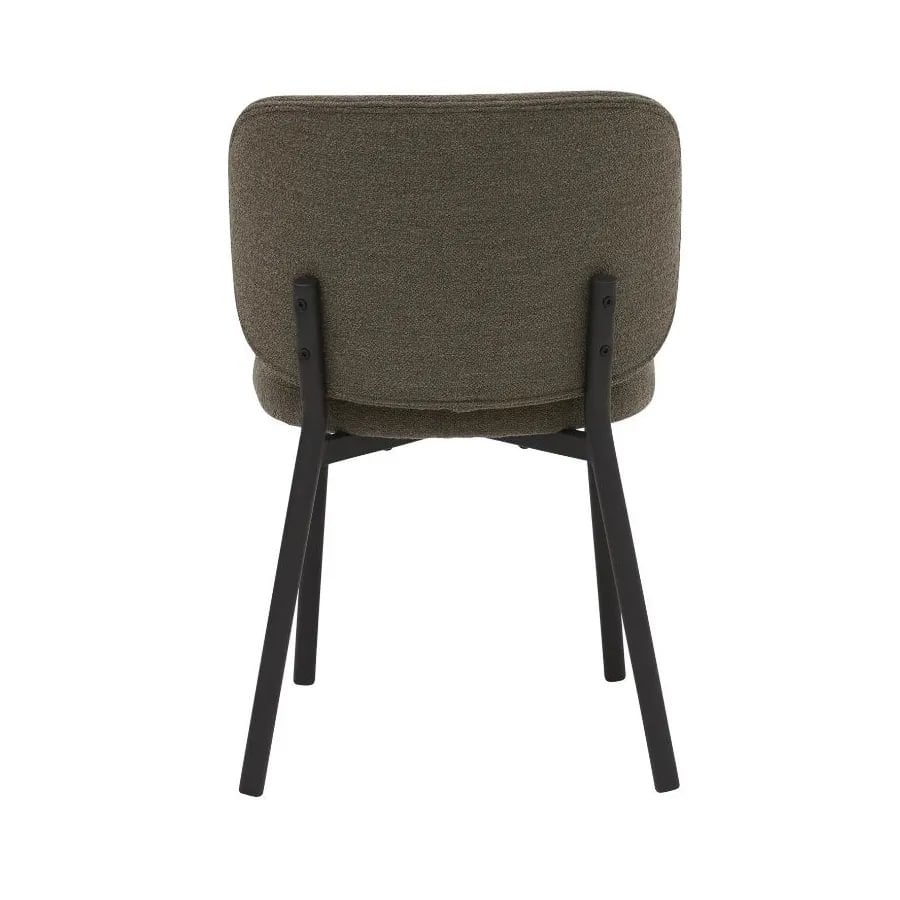 Swan borðstofustóllinn er nútímalegur og fágaður stóll klæddur mjúku Bouclé-áklæði sem fæst í fjórum litum. Hér er hann sýndur í brúnu. Svartir málmfætur og mjúk bólstrun tryggja þægindi og stíl við öll tilefni.